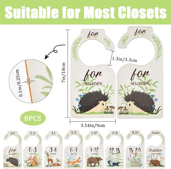 - 8Pcs Baby Closet Dividers: You will receive 8pcs wooden baby closet dividers, including newborn, 0-3 months, 3-6 months, 6-9 months, 9-12 months, 12-18 months, 18-24 months and toddler, will help sort out your baby's clothes.
