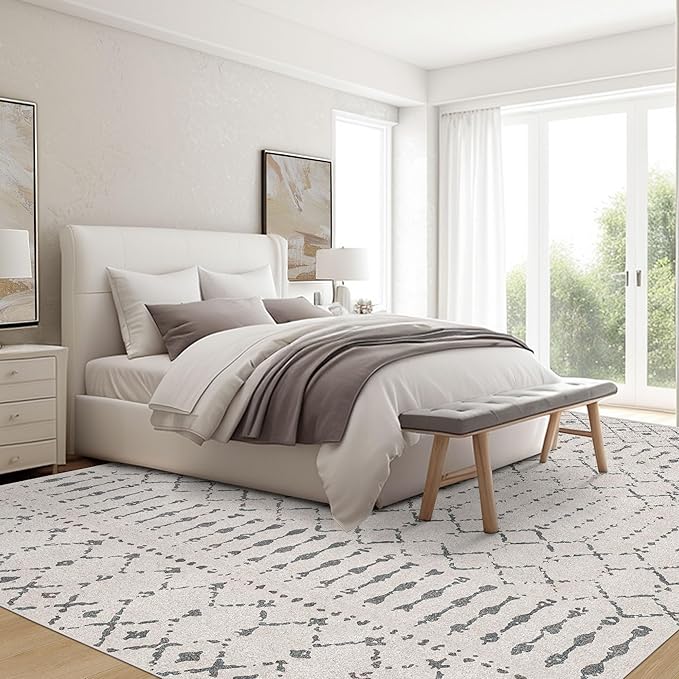 - High-quality Low pile rug: This area rug 5x7 is skillfully made from premium fiber which makes it ultra-soft and comfortable, better withstanding daily wear and tear. Designed at 0.2 inches, this soft neutral rug fits any season and will not obstruct the doorway. Expertly machine-woven and reinforced lock edges ensure non-shedding.