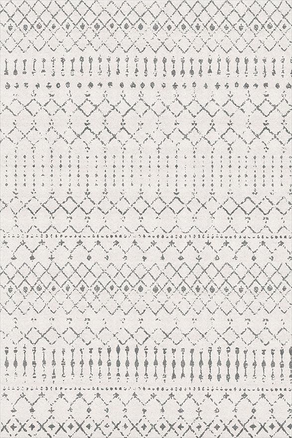Deerly Area Rug 6x9 Living Room Distressed Area Rugs, Non Slip Washable Rugs Large Moroccan Boho Farmhouse Rug for Bedroom Dining Room, Neutral Low Pile Indoor Floor Carpet, Off White/Grey