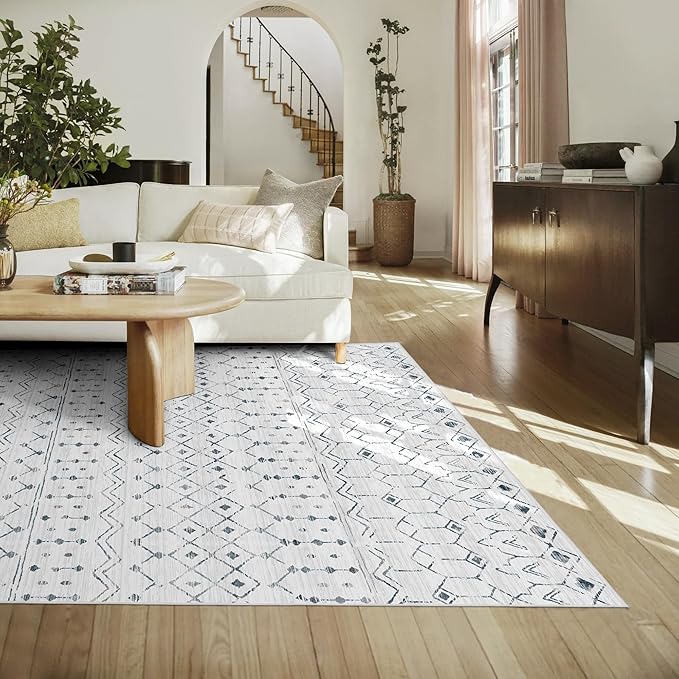 - Decorative Living Room Rugs: A neutral bohemian pattern paired with white and dark grey gives these 6x9 rugs a sophisticated look while adding a touch of elegance. This large rug can complement various decor, making it a standout piece in any room.