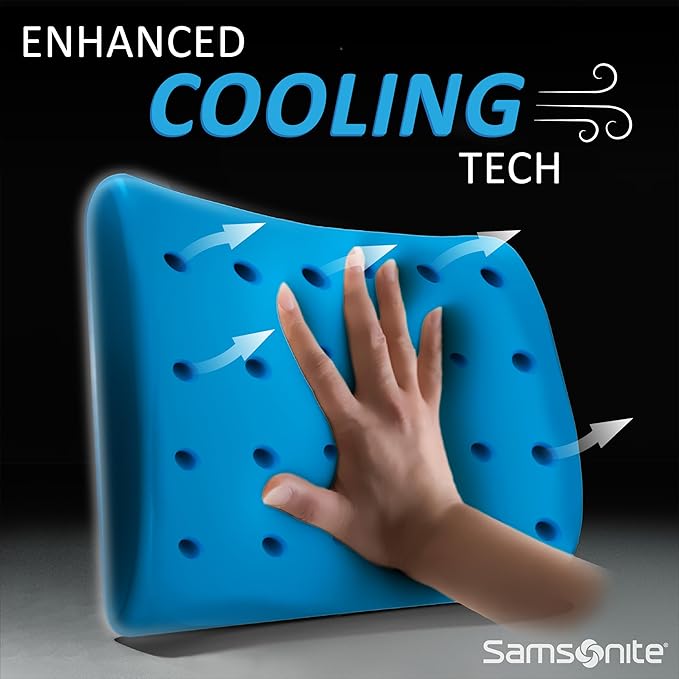 - COOLING COMFORT - Elevate your seating experience with the Samsonite Lumbar Pillow featuring infused gel technology. The integrated gel provides a refreshing cooling effect, ensuring a comfortable and soothing support for your lower back, making it perfect for long hours of sitting.