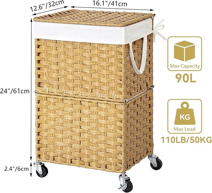 - Easy to Carry and Move : the hamper is equipped with inner bag laundry up and down stairs easily that allows you to quickly and easily transfer your dirty clothes to the laundry room without moving the laundry bin. At the same time, with wheels you can easily transfer the basket to any place you want