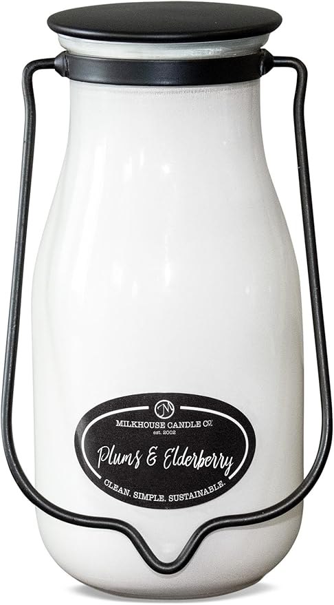Milkhouse Candle Company, Plums & Elderberries, Creamery Collection, Scented Soy Candle, 14oz Milkbottle
