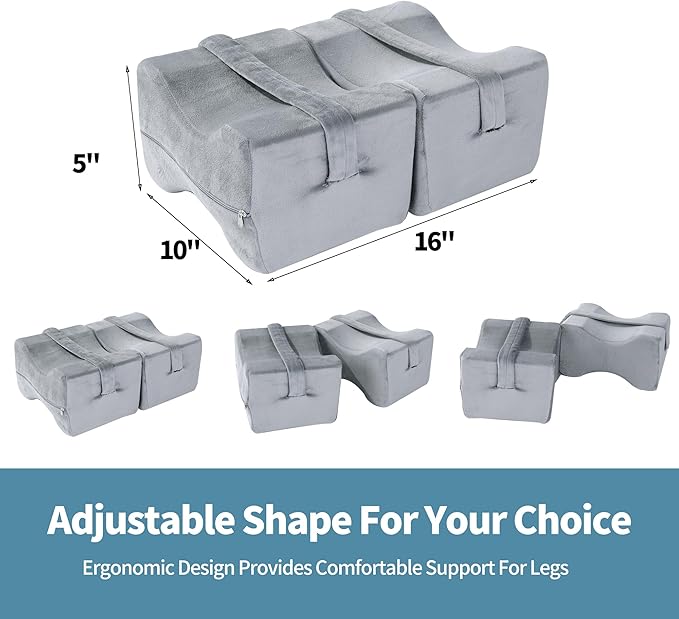 - 【ADJUSTABLE SHAPE TO FIT YOUR NEEDS】- Specifically designed for side and back sleepers. You can bend the legs freely to adjust the shape of the pillow to fit your size, shape or sleeping position. Our knee pillow for side sleepers is made from supportive memory foam, which adjusts to the shape of your lower body, creating a support system for your knees, hips, and legs.
