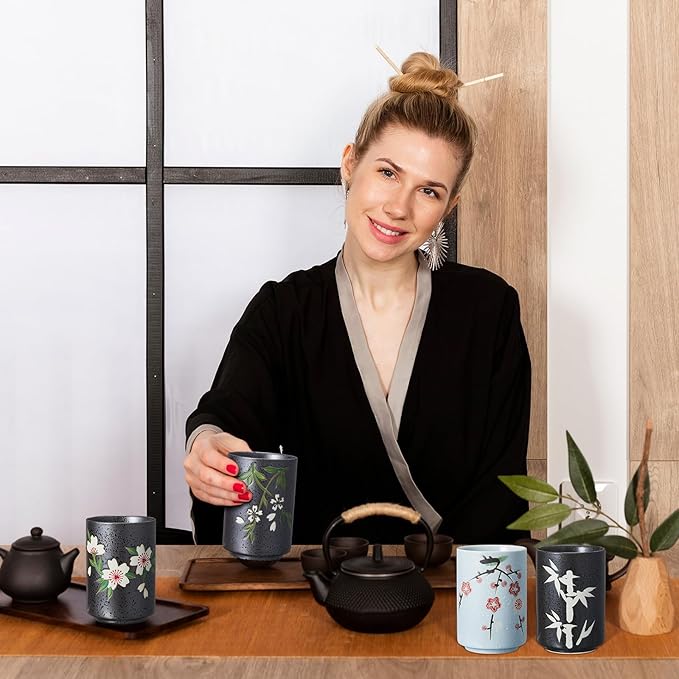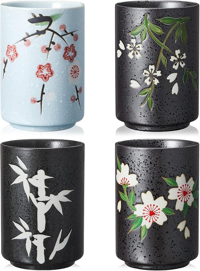- Convenient Set: experience the combination of function and aesthetics with this set of 4 Japanese tea cups; Crafted from quality ceramics, these cups boast a traditional Japanese design with visual appeal that enhances your drinkware collection