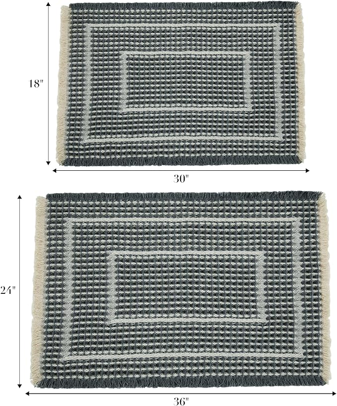 - Upgraded Waffle Desgin: This boho bath mat is power-loomed with upgraded yarns-Integrating decoration and durability. The heavier and thicker threads are applied to make sure the pattern will be more solid and compact- NEVER OUT OF SHAPE!