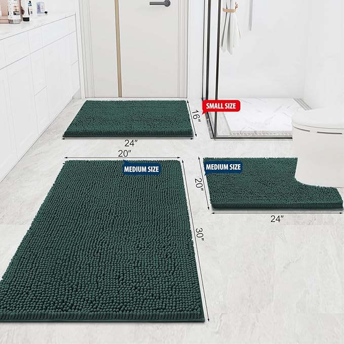 Smiry Luxury Chenille Bathroom Rugs 47x24, Extra Soft and Absorbent Shaggy Bath Mat, Machine Washable, Non-Slip Plush Carpet Runner for Tub, Shower, and Floor, Home Decor Accessories, Green