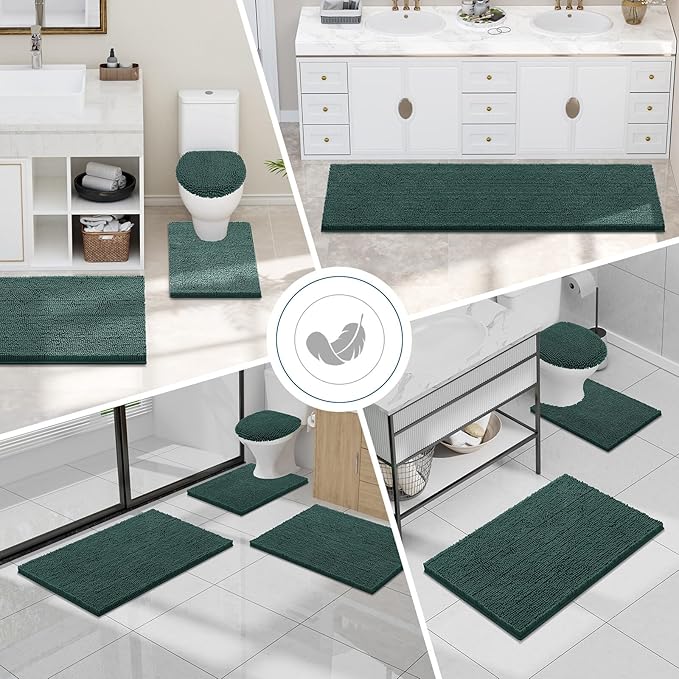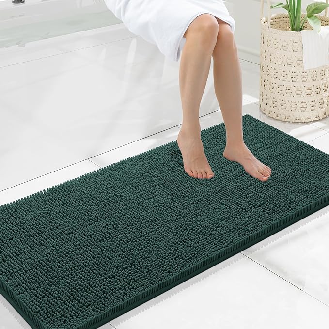 Smiry Luxury Chenille Bathroom Rugs 47x20, Extra Soft and Absorbent Shaggy Bath Mat, Machine Washable, Non-Slip Plush Carpet Runner for Tub, Shower, and Floor, Home Decor Accessories, Green