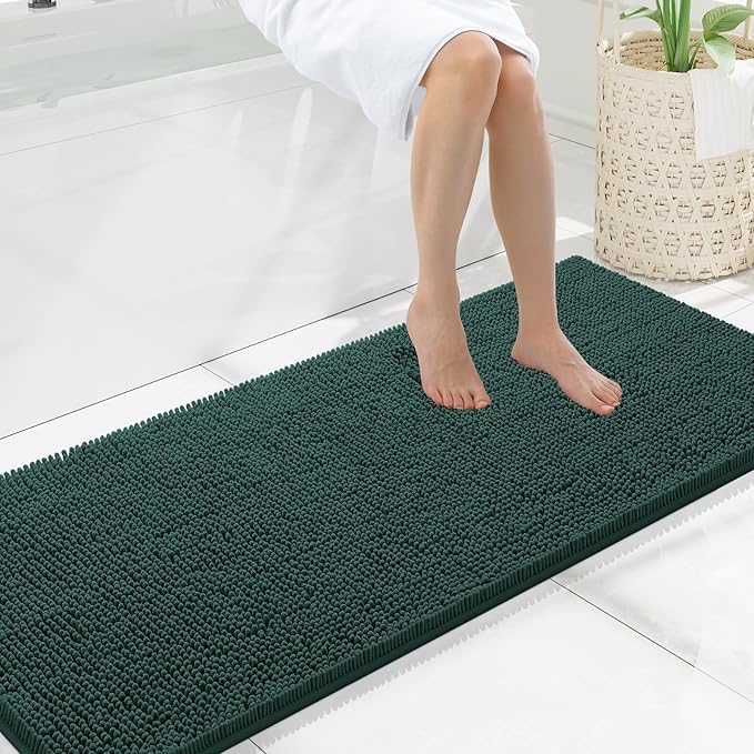 Smiry Luxury Chenille Bathroom Rugs 59x20, Extra Soft and Absorbent Shaggy Bath Mat, Machine Washable, Non-Slip Plush Carpet Runner for Tub, Shower, and Floor, Home Decor Accessories, Green