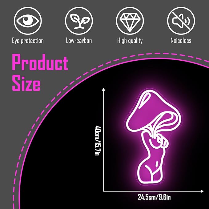 - SEXY AND CHARMING DECORATION:Looking for some glamorous and sexy decorations for your space? You can't miss this unique Lady Mushroom Neon Signs.This stunning LED Light Sign is sure to catch your eye instantly with its beauty, and the sexy neon signs for wall decor creates a romantic ambience that will mesmerize you