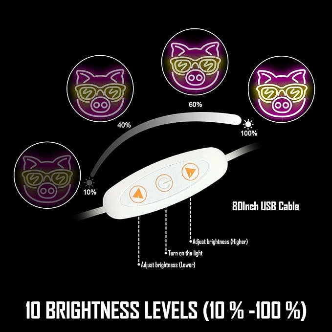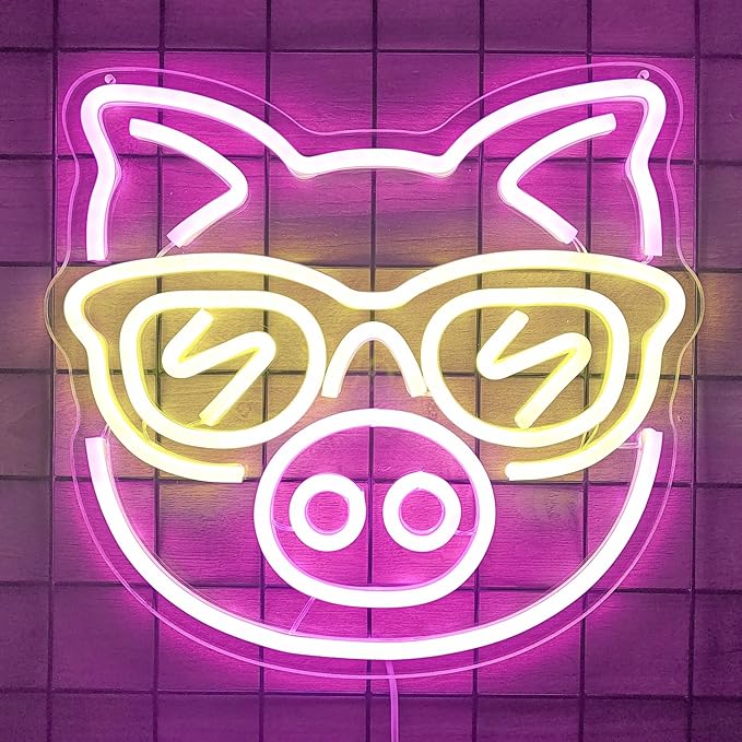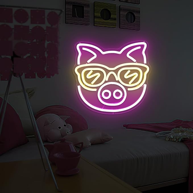 - LIGHT UP YOUR ROOM:Pig Neon Sign is used for wall decoration,using LED neon lights, LED neon lights can illuminate the surrounding environment. Cool LED night lights can improve your mood and maintain happiness. Through this unforgettable neon lantern logo, your room is more beautiful, and your house is bright and artistic