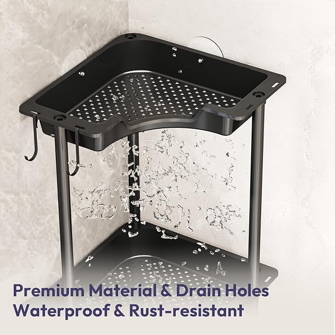 - [Qualitative Materials]: Our waterproof shower caddy stand is made of high-quality, combines stainless steel support poles with plastic baskets to ensure longevity & durability. The premium construction of shower organizer corner can prevent rust, moisture and water
