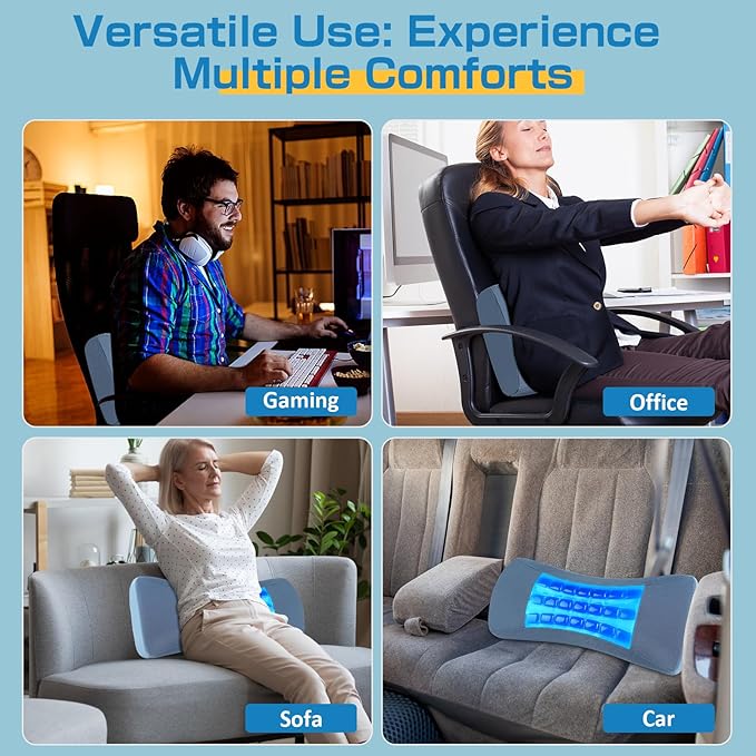 - Cooling Gel Lumbar Pillow; The gel cooling cover keeps your lower back cool throughout the night, reducing sweat and discomfort, while the high-density molded sponge provides long-lasting comfort and support.