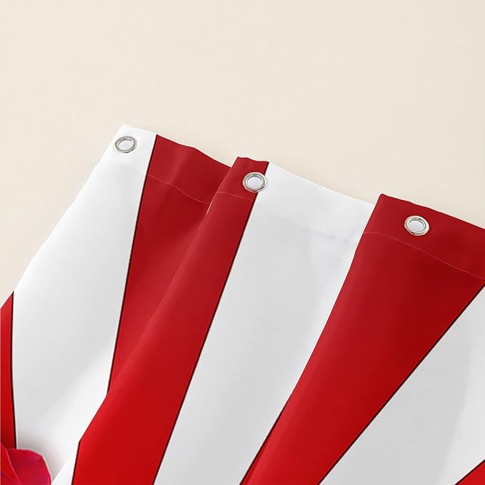 AILONEN Red Rose Hearts Print Shower Curtain for Bathroom, Romantic Flower Red and White Stripe Bathroom Decor 72" W*72" H Bath Curtain Polyester Waterproof Shower Curtain with 12 Hooks
