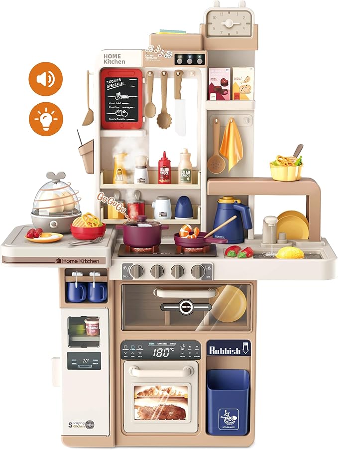 72-Piece Kids Play Kitchen Set: 27.16 x 10.62 x 36.61 Inches, Interactive Features, Realistic Design, and Educational Fun for Ages 3 and Up (Light Brown 72)