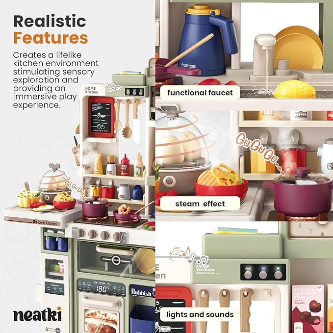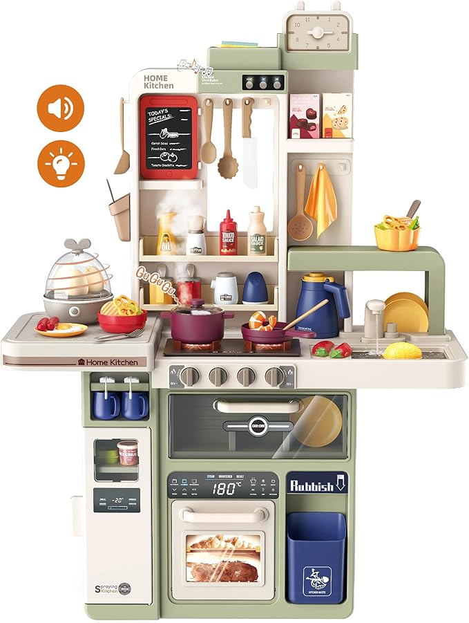 72-Piece Kids Play Kitchen Set: 27.16 x 10.62 x 36.61 inches: Interactive Features, Realistic Design, and Educational Fun for Ages 3 and Up (Avocado Ash 72)