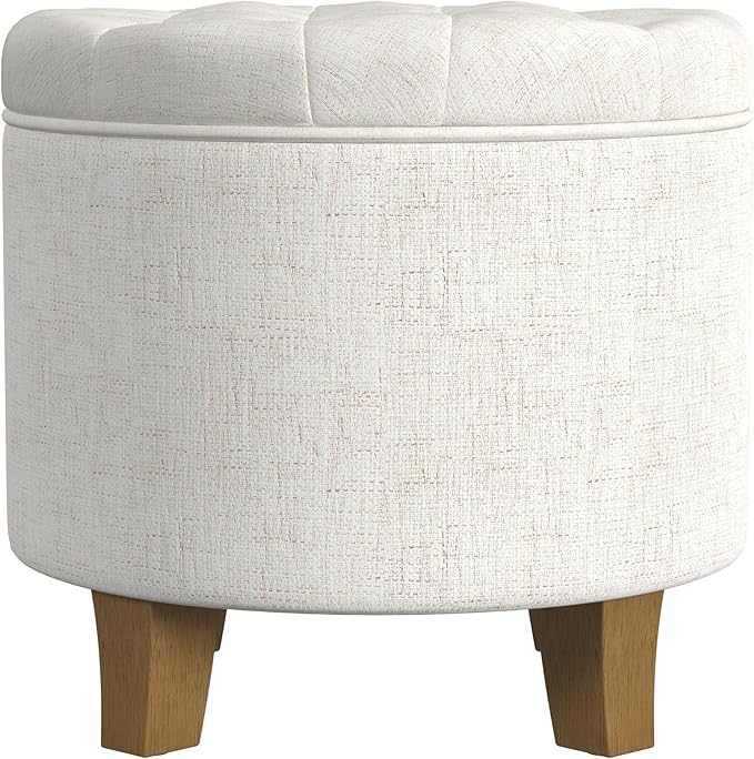 HomePop Home Decor | Upholstered Round Tufted Foot Rest Ottoman | Ottoman with Storage for Living Room & Bedroom | Decorative Home Furniture, Cream Textured Solid