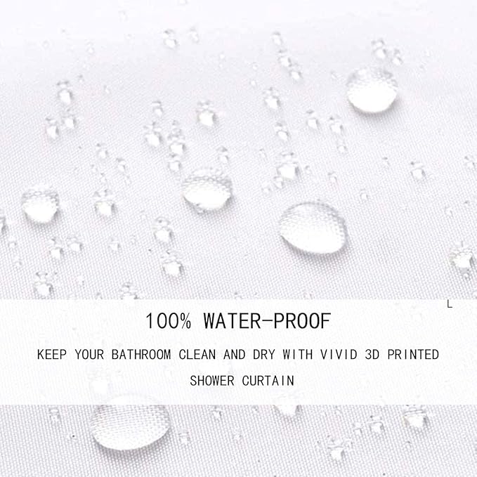 - Waterproof Print: Eco Friendly High Quality Polyester Fabric, Non PVC, Non Plastic, Non Peva,which is made to withstand,Waterproof,quick to repel and dry.Easily to be cleaned and maintained.Machine washable, Wrinkle resistance, Shape retention, High strength, Elastic recovery.Vibrant colors, Clear image, Harmless and no fading.