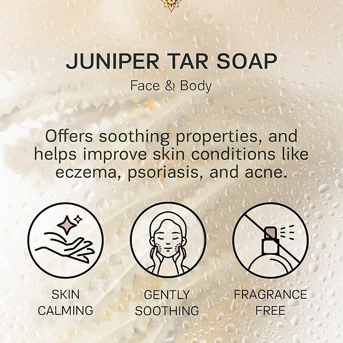 - THERAPEUTIC JUNIPER PINE TAR - Infused with natural juniper pine tar oil, known for its skin-soothing and therapeutic properties, this soap is ideal for various skin conditions.