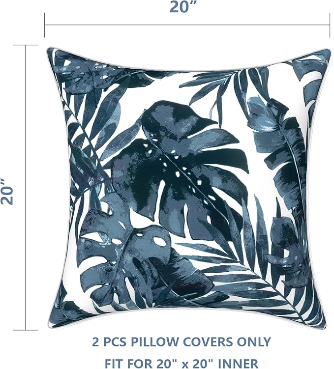LVTXIII Outdoor Throw Pillow Covers Pack of 2 Patio Waterproof Pillow Cases Fade Resistant Accent Pillow Covers for Home and Garden Furniture Decoration, 20"x20", Palms Blue