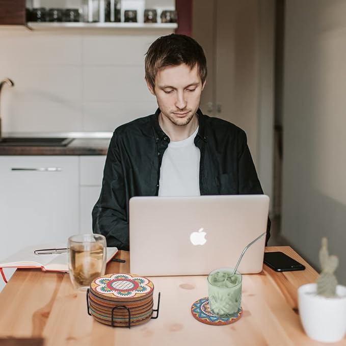 - Vibrant Coasters for Drinks:Unlike ordinary cork coasters, these drink coasters feature attractive boho patterns in bright colors. This unique design adds a touch of liveliness to your home decor, making them an eye-catching addition to any setting.