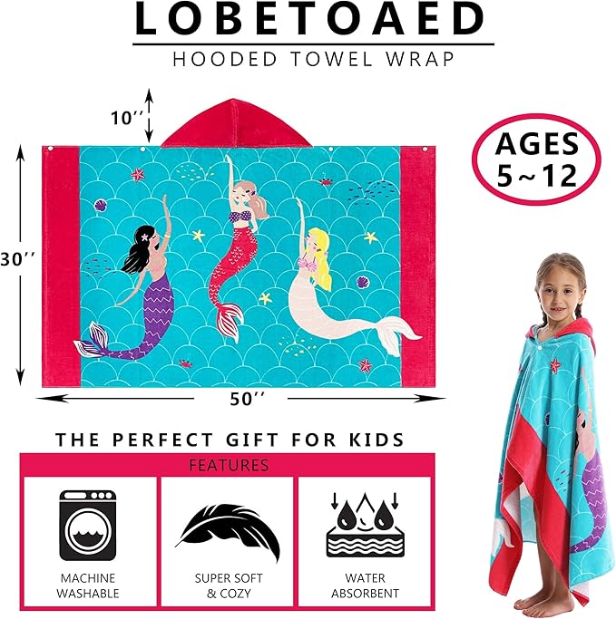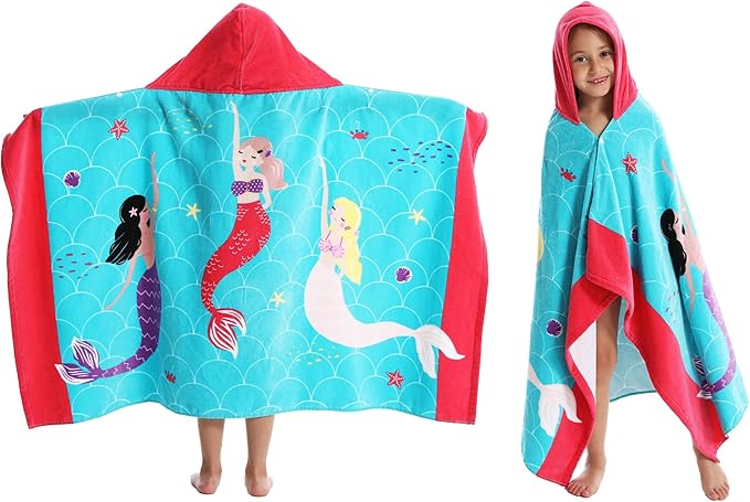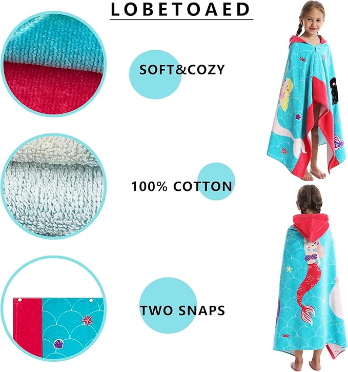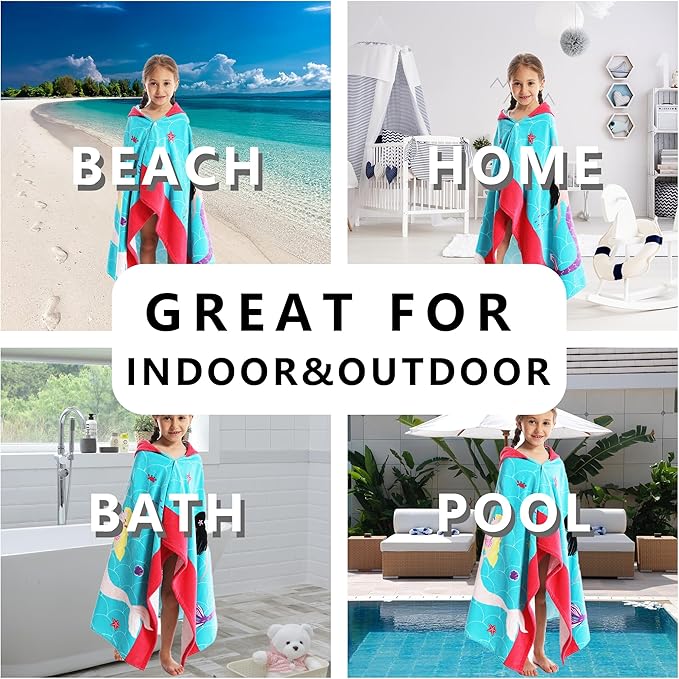 - ?MORE FRIENDLY DESIGN for KIDS?? Our baby bath & hooded towel has two snaps on the side to help you wrap your child up in comfort and playful style.This surf poncho is easy to put on and off, and will not slide down from body.The hood can helps dry your child's hair. We have many cute cartoon styles suitable for boys & girls like Dinosaur, Mermaid, Cat, Unicorn, Shark, Car, Narwhal...