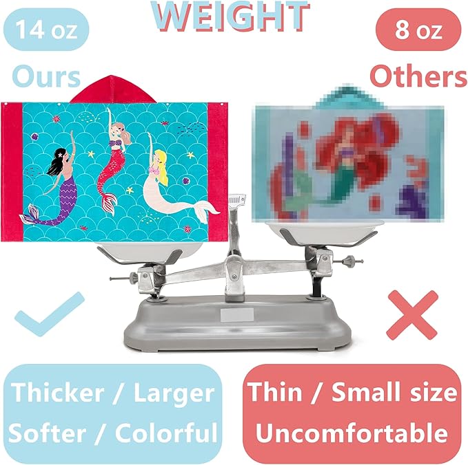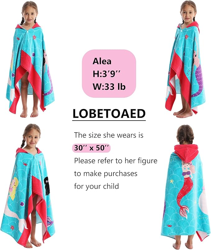 - ?OVERSIZE SIZE KIDS TOWEL?? A hooded towel bath wrap measuring 50" x 30" (127 x 76cm) with a 10" x 10"(25 x 25cm) hood.It comes in at 14 ounces(400 grams),it's pretty thick!Suitable for toddlers&kids from 5 to 12 years old.It is big enough to accompany your child's growth