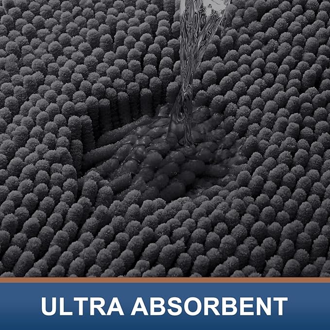 Smiry Luxury Chenille Bathroom Rugs 70x24, Extra Soft and Absorbent Shaggy Bath Mat, Machine Washable, Non-Slip Plush Carpet Runner for Tub, Shower, and Floor, Home Decor Accessories, Charcoal Grey