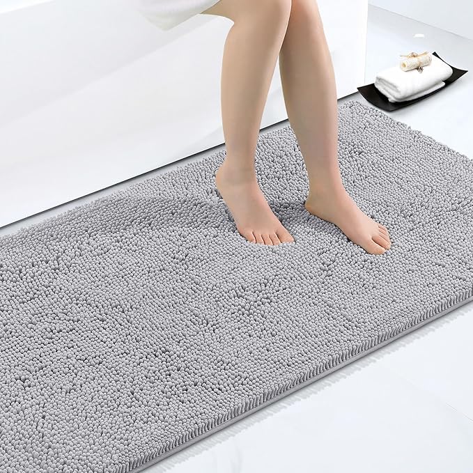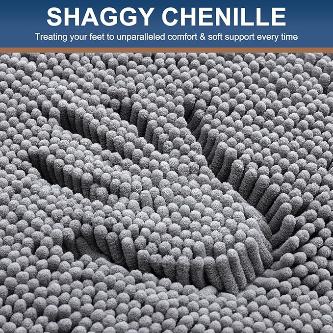 Smiry Luxury Chenille Bathroom Rugs 40x32, Extra Soft and Absorbent Shaggy Bath Mat, Machine Washable, Non-Slip Plush Carpet Runner for Tub, Shower, and Floor, Home Decor Accessories, Grey