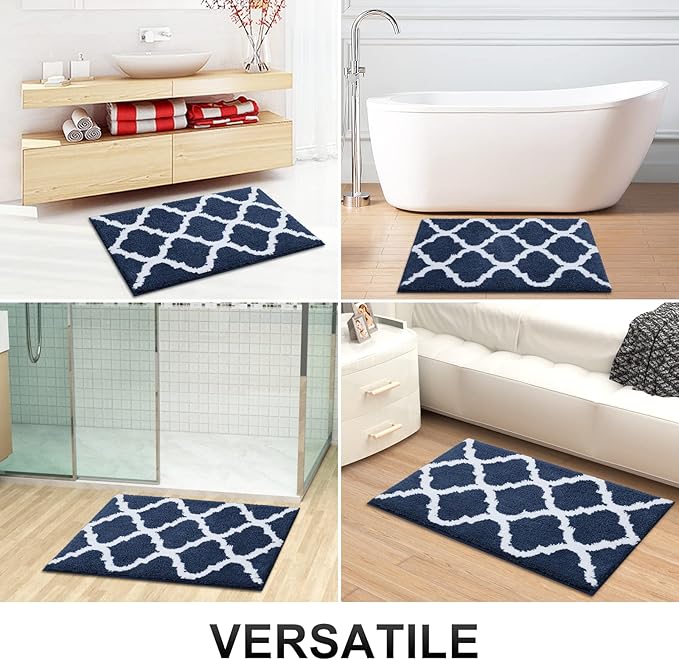 - [Comfortable and Luxurious] This bath mat boasts a contemporary Moroccan geometric design with a 0.6-inch high pile, incorporating a unique ultra-fine fiber-locking technique for unparalleled fluffiness and softness. Immerse your feet in the cozy and comfortable feel of the bathroom mat, adding a touch of sophistication to your space
