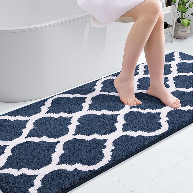 OLANLY Bathroom Rugs 71x24, Soft and Absorbent Microfiber Bath Rugs, Non-Slip Shaggy Shower Carpet, Machine Wash Dry, Bath Mats for Bathroom Floor, Tub and Shower, Navy