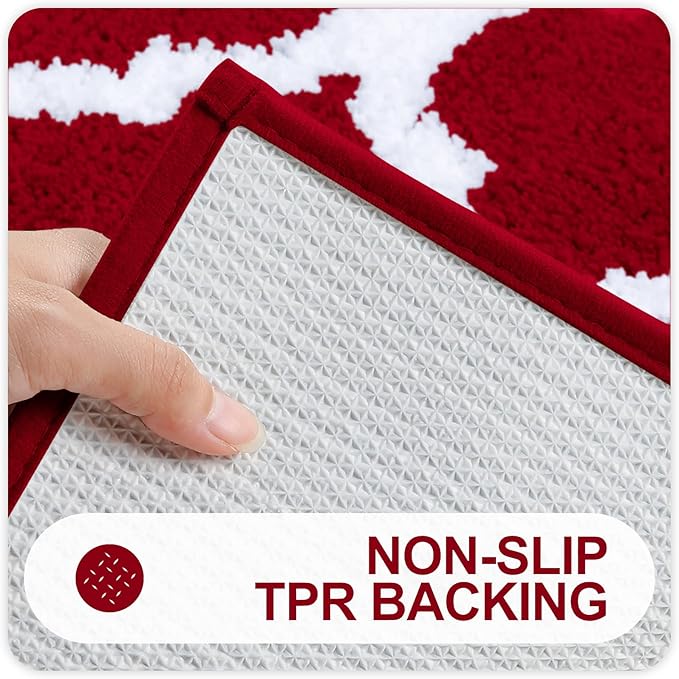 - [Non-Slip Backing] To prevent movement and slipping, the bathroom mat features sturdy and persistent TPR backing. In contrast to other bathroom mats, the rubber backing withstands multiple washes without wearing or peeling, providing an additional layer of safety for you and your loved ones to move confidently in the bathroom.WARNING: Please note not to place the mat on wet surfaces and make sure that the floors are dry underneath the rug, to prevent slippage
