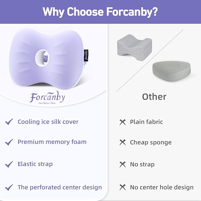 - 【Ergonomic Memory Leg & Knee Pillow】The knee pillows for knee pain are made of memory foam and ice silk, the premium memory foam is soft yet supportive, and will not deform, ice silk cover comes with an elastic band and is machine washable. The sciatica pain relief pillow with a perforated center design, facilitates air circulation, which is breathable to reduce sweat and provide you with deep, refreshing sleep.