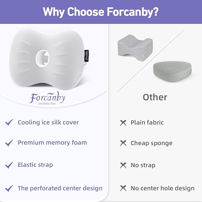 - 【Ergonomic Memory Leg & Knee Pillow】The knee pillows for knee pain are made of memory foam and ice silk, the premium memory foam is soft yet supportive, and will not deform, ice silk cover comes with an elastic band and is machine washable. The sciatica pain relief pillow with a perforated center design, facilitates air circulation, which is breathable to reduce sweat and provide you with deep, refreshing sleep.
