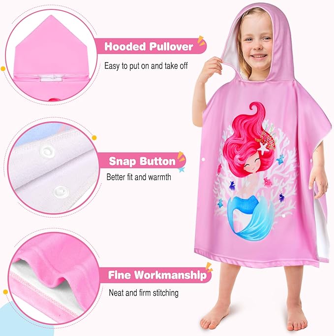 - CUTE DESIGN: The design of this toddler cartoon pool towel is full of children's fun and vitality; the pullover design is easy to put on and take off to prevent it from falling off, and the snap buttons on both sides can better wrap around the child