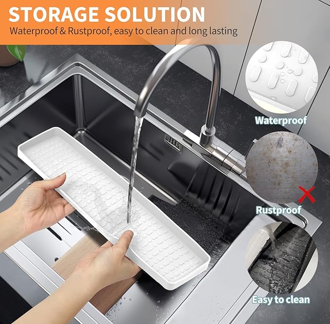 White and Black Buffalo Plaid Faucet Water Catcher Mat 2 Pack Classic Buffalo Check Drying Mat Absorbent Bathroom Faucet Handle Drip Catcher Tray Bar RV Kitchen Sink Splash Guard 23x5 Inches