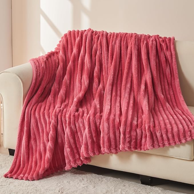 NEWCOSPLAY Super Soft Twin Blanket Coral Pink Premium Silky Flannel Fleece 3D Ribbed Jacquard Lightweight Bed Blanket All Season Use (Coral Pink Ribbed, Twin(60"x80"))