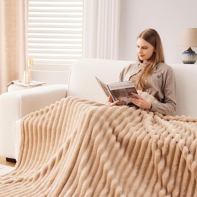 NEWCOSPLAY Super Soft Twin Blanket Brown Premium Silky Flannel Fleece 3D Ribbed Jacquard Lightweight Bed Blanket All Season Use (Brown Ribbed, Twin(60"x80"))
