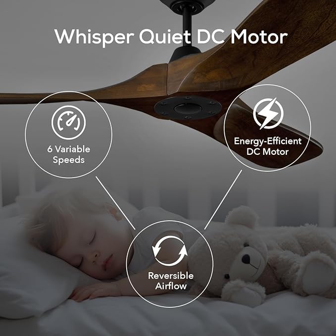 - ✅Energy-Efficient DC Motor: Includes a green, energy-efficient DC motor, the fan provides optimal airflow with high CFM and low noise levels. Enjoy the benefits of a large ceiling fan without disrupting your peace and quiet.
