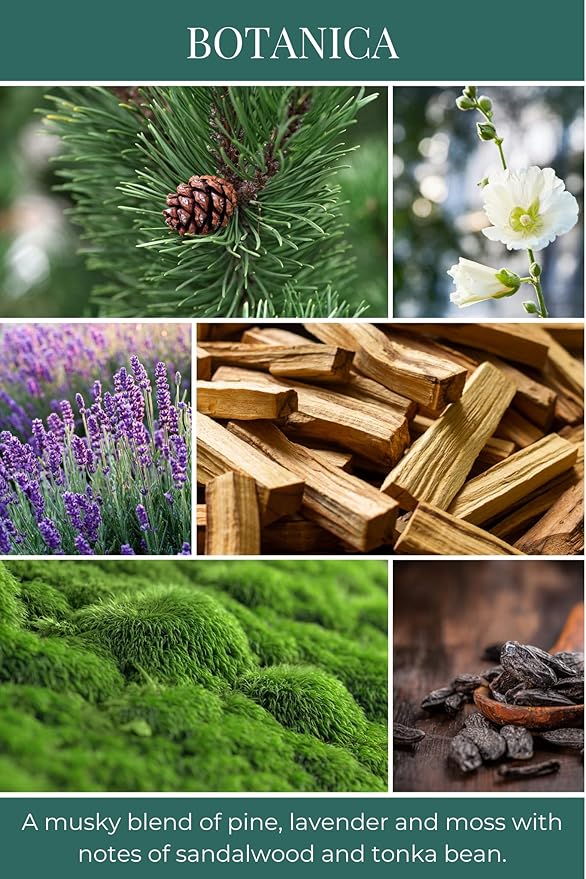 - BOTANICA Scent Description: A musky blend of pine, lavender and moss with notes of sandalwood and tonka bean