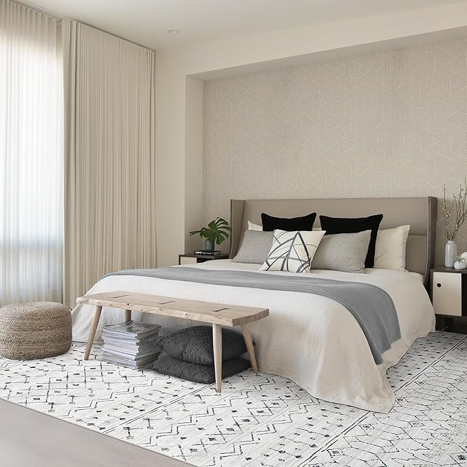 - High-quality Low pile rug: Our 9x12 area rug is skillfully made from premium fiber which makes it ultra-soft and comfortable, better withstanding daily wear and tear. Designed at 0.2 inches, this soft neutral rug fits any season and will not obstruct the doorway. Expertly machine-woven and reinforced lock edges ensure non-shedding.
