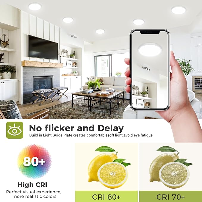 - 【Energy Saving and Stable Lighting Fixture】 Equivalent to a traditional 120W two-bulb, Hepside LED ceiling light only has 12W(1200 lumens) low power consumption, which can save up to 90% on your home electricity bills by replacing your old lighting fixtures . No flicker, no blue light, natural and soft lighting source care for your family.