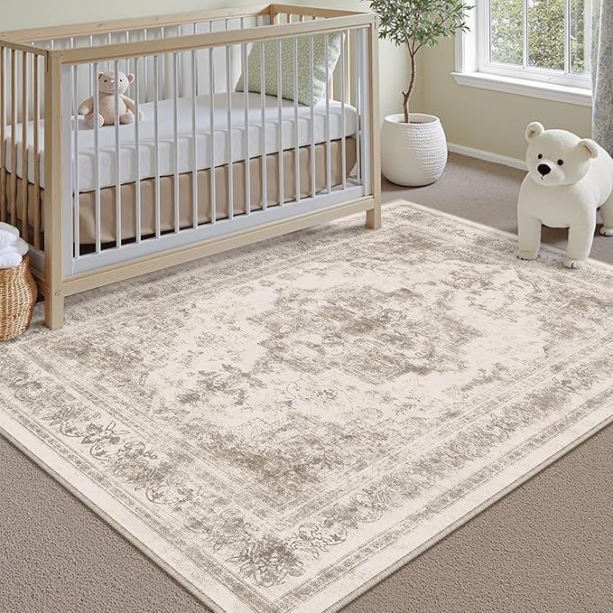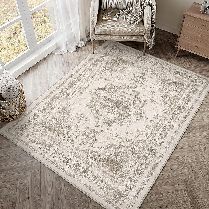 Area Rug 3x5 Washable Taupe Rug Vintage Boho Medallion Entryway Door Mat Entrance Distressed Retro Carpet Non Slip Low Pile Small Soft for Office Kitchen Bedroom Laundry Bathroom Hallway
