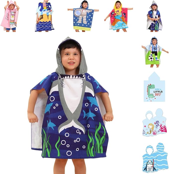 Hooded Kids Beach Towels - Soft Microfiber Poncho Towel for Ages 1 to 6, Quick Dry & Lightweight Swim Cover-ups, Ideal for Boys and Girls