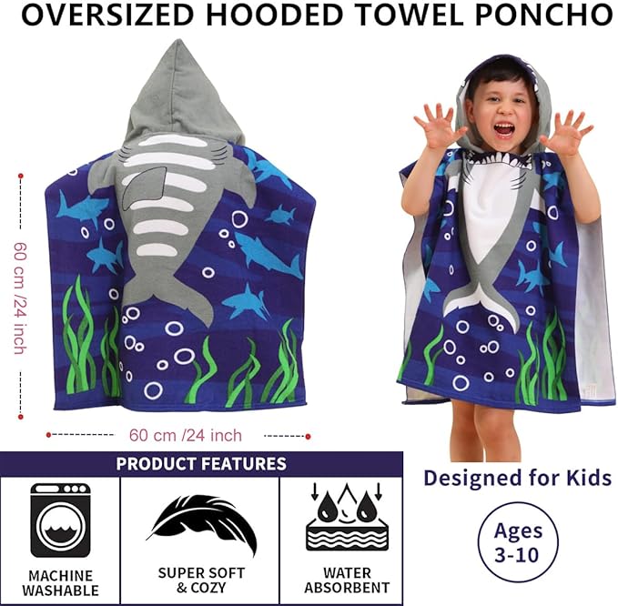 - Two Size Options: Available in two sizes - 24*48 inches and 30*60 inches, catering to different age groups of children. Whether for toddlers or older kids, WEIENSC Kids Hooded Beach Towel offers versatility and comfort wherever your child goes!