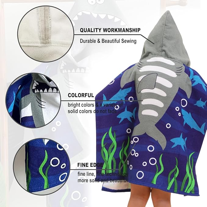 - Soft and Absorbent: Our WEIENSC Kids Hooded Beach Towel is made from ultra-fine fiber material, soft, skin-friendly, and absorbs water quickly, providing a warm and comfortable beach experience for your child.