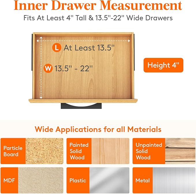 - Expandable & Adaptable: With a compact width of 0.8", a height of 4", and an adjustable length ranging from 13.5" to 22", our drawer dividers effortlessly fit into most drawers and cabinets, providing a perfect solution for organizing your items and maintaining tidy drawers consistently.