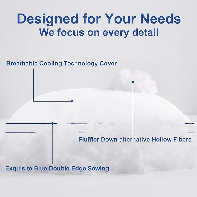 - ✅【Double Edges Sewing Design】Exquisite double edges sewing design and detail handling, and blue double edges create hotel-level luxury style.Let you enjoy the hotel quality pillows sleep experience.