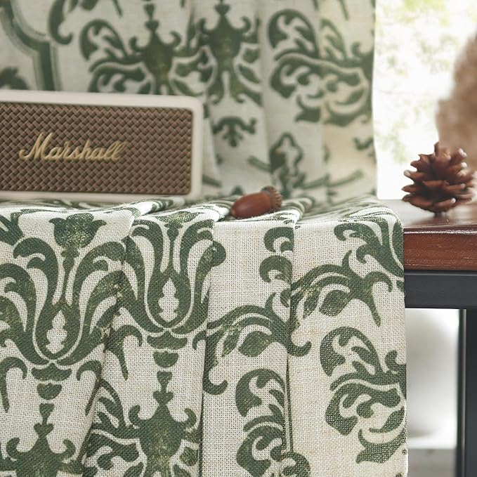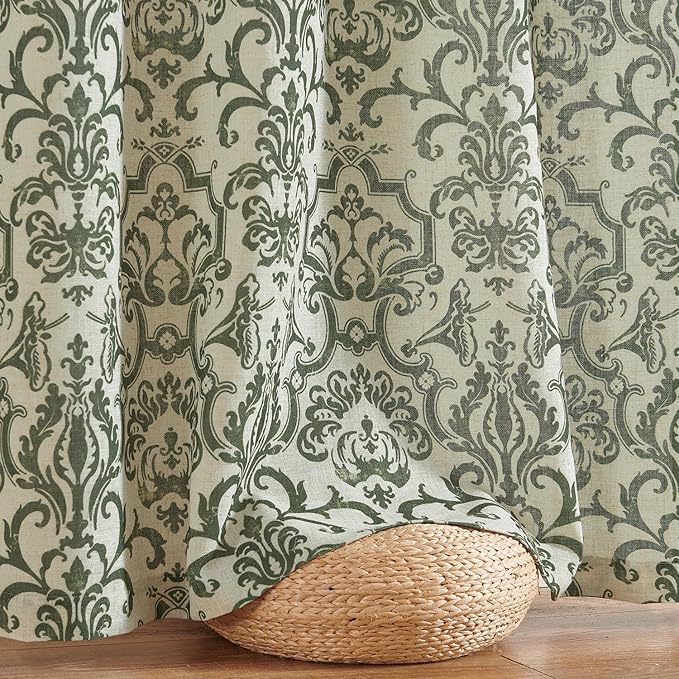 jinchan Extra Linen Curtains for Living Room Moss Green Damask 108 Inches Long for Bedroom Light Filtering Vintage Curtains 9FT Long for Drapes Grommet Window Treatments 2 Panels Set