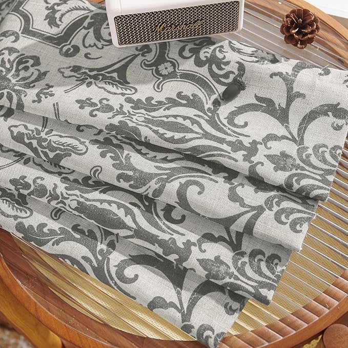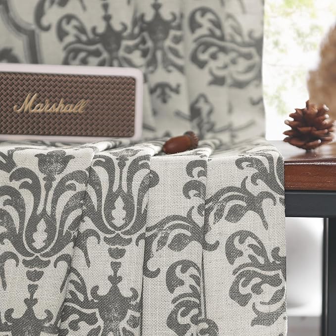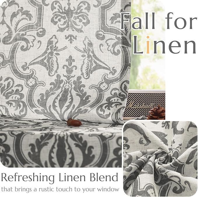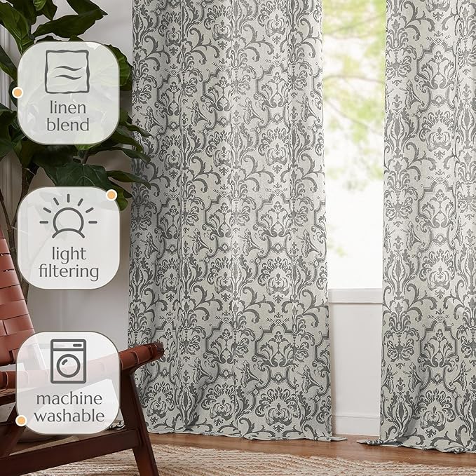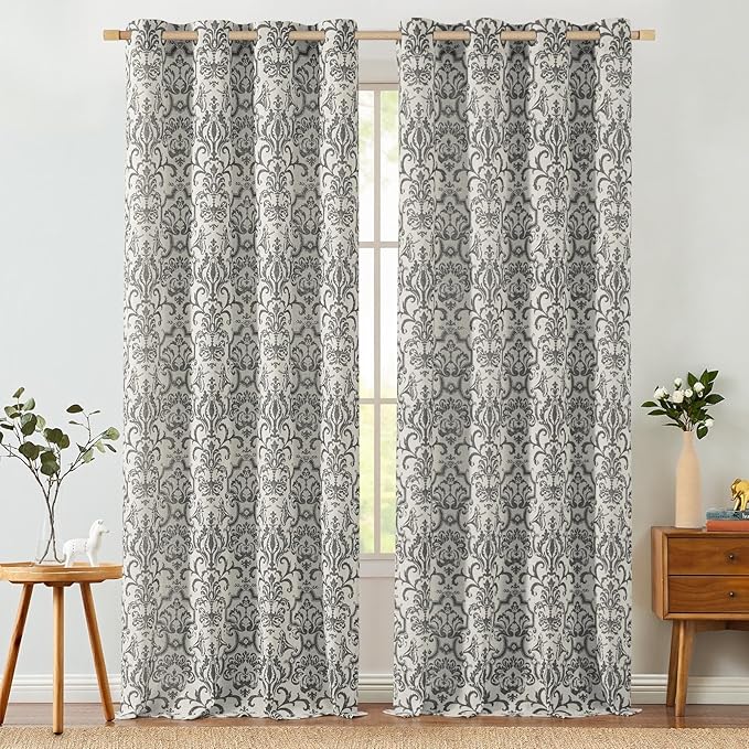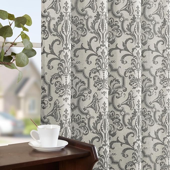 jinchan Extra Long Linen Curtains for Living Room Grey Damask Curtains 108 Inches Long for Bedroom Light Filtering Vintage Curtains 9FT Long for Drapes Grommet Window Treatments 2 Panels Set